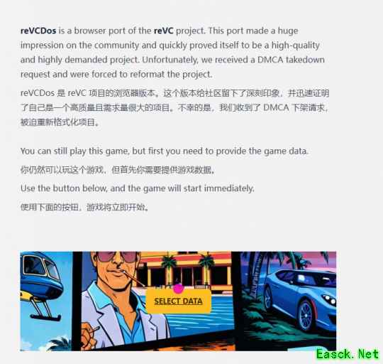 新版项目的最大改变在于彻底切断了直接的版权内容分发。网站不再从其服务器提供任何受版权保护的原版游戏文件。取而代之的是,它要求玩家必须自行准备并上传其合法拥有的《GTA:罪恶都市》PC原版游戏文件。本质上,网站现已转变为一个纯技术性的“浏览器游戏引擎”或“技术外壳”,其功能仅是在浏览器环境中运行用户自己提供的游戏文件。这一设计旨在从法律层面剥离项目的直接盗版分发嫌疑。