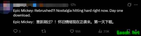 消息一经发布,就在推特上引发了热烈讨论。不少情怀党对《传奇米老鼠》的到来表示兴奋:“怀旧感拉满!首日必下。”