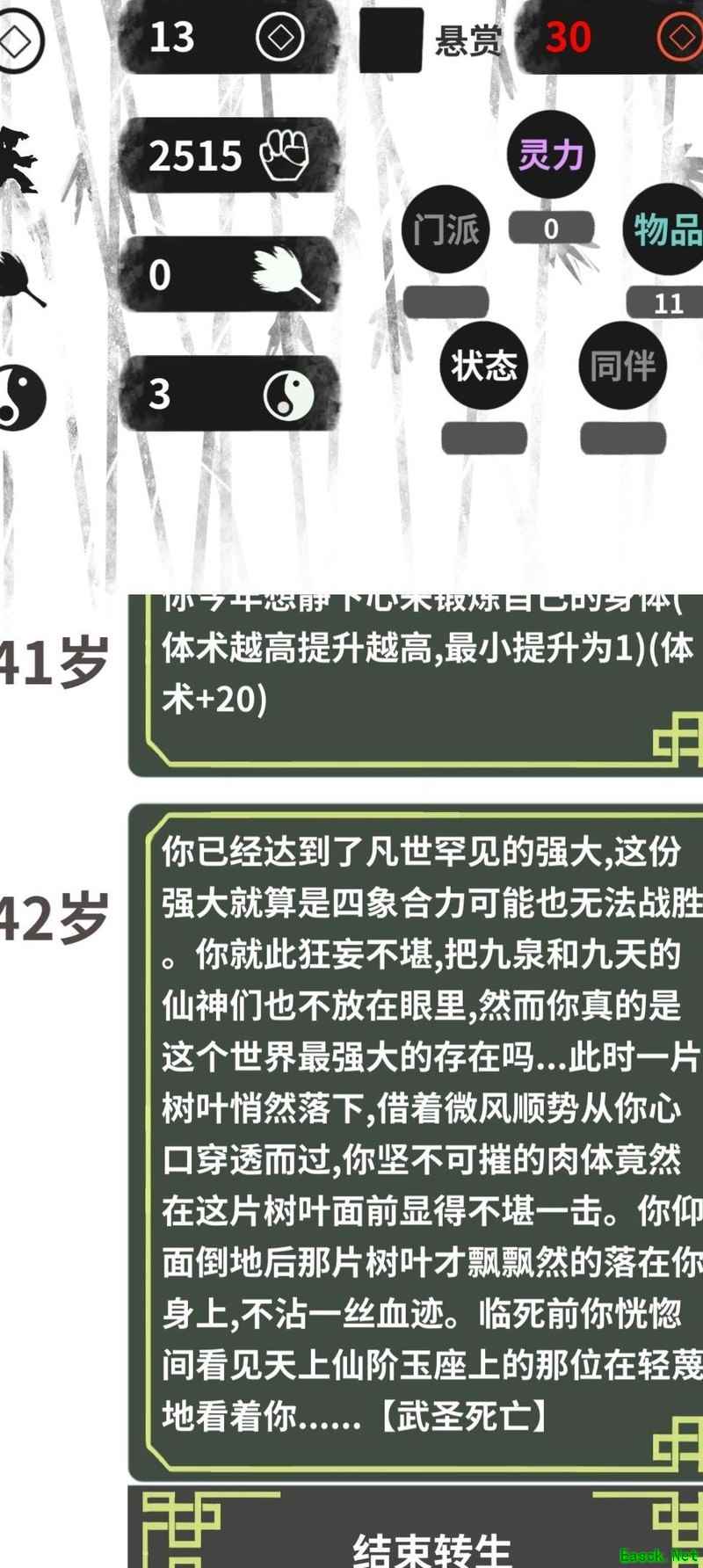 天生皇者初始拥有100体质与200灵力,借助武圣之力将灵力转化为体质,持续锤炼体魄,最终使体质达到2500,便可完成武圣陨落的结局。