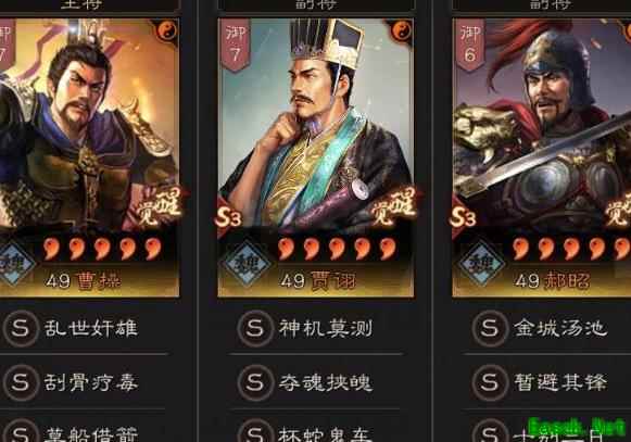 曹操为主将,搭配刮骨疗毒与草船借箭战法。