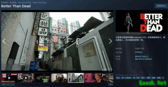 《Better Than Dead》是一款第一人称射击游戏。玩家扮演一名被绑架后的幸存者,女主角随身携带摄像设备,画面始终以记录仪角度呈现,镜头既是视角,也是故事的一部分,主角将向绑架犯无情复仇,并拯救其他的受害者。