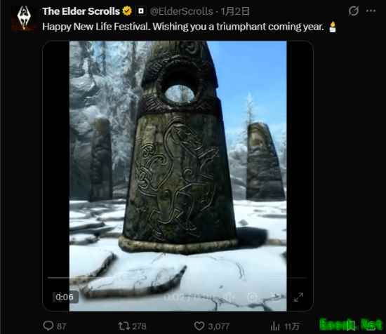 《上古卷轴》官方推特账号近日发布了一条以“新生节快乐”为主题的节日祝福推文,意在向玩家表达安静美好的节日祝福。然而事与愿违,社区的反应瞬间失控,演变成一场混乱的集体宣泄。