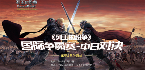 7月22日的中日国际争霸赛,将在中国的东莞和日本的秋叶原同时点燃战火。官方赛事主题页面今日正式上线,打开战事“传送门”。整屏的主题海报带来强烈的视觉冲击,两位身穿战甲的领主剑刃相对,迸发出的火光彰显出力量与怒火,身后两支大军如潮水般呼啸冲锋,即将短兵相接,正预示着中日大赛即将开战。