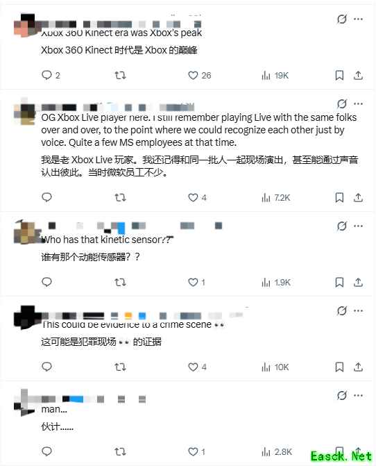 来围观的玩家评论多样。有晒出自己妥善保管的一些旧物图;也有玩家非常眼尖地看到了Kinetic宣传,感叹其那款产品;还有玩家直接怀念起Xbox360的时代,并称赞那时候可真是Xbox的巅峰。