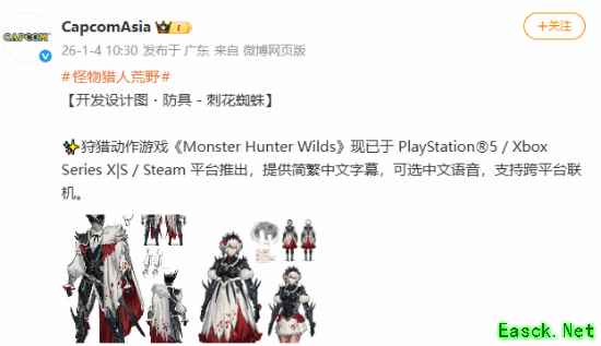 《怪物猎人:荒野》公开刺花蜘蛛防具设定:细节华丽 裙底还有蔷薇