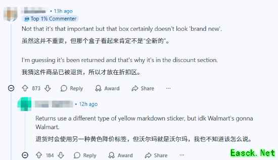 也有此前在沃尔玛干过的网友说道:“如果某家沃尔玛门店通常不销售该商品,那么被退回的商品有时会直接进行清仓处理,而非转为员工价促销。这是因为清仓方式可以比员工价促销提供更大的降价幅度。消息来源:本人曾在沃尔玛电子部门工作至2025年9月。”