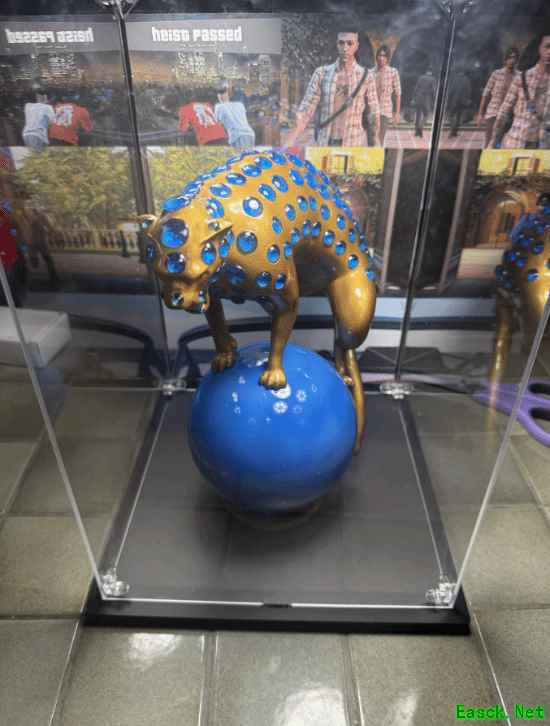 雕像原型源自游戏中佩里克岛劫案斯特里克勒金库玻璃柜里的那座黑豹雕像。这份礼物完全由该玩家手工打造:先通过3D打印塑形并上色,最后施加亮面涂层,雕像上镶嵌的“宝石”则是特意选购了多种尺寸的亚克力塑料精心搭配而成,高度还原了游戏中的造型。