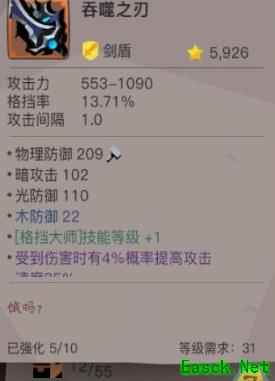 武器等级与强化程度越高,格挡率加成越显著。