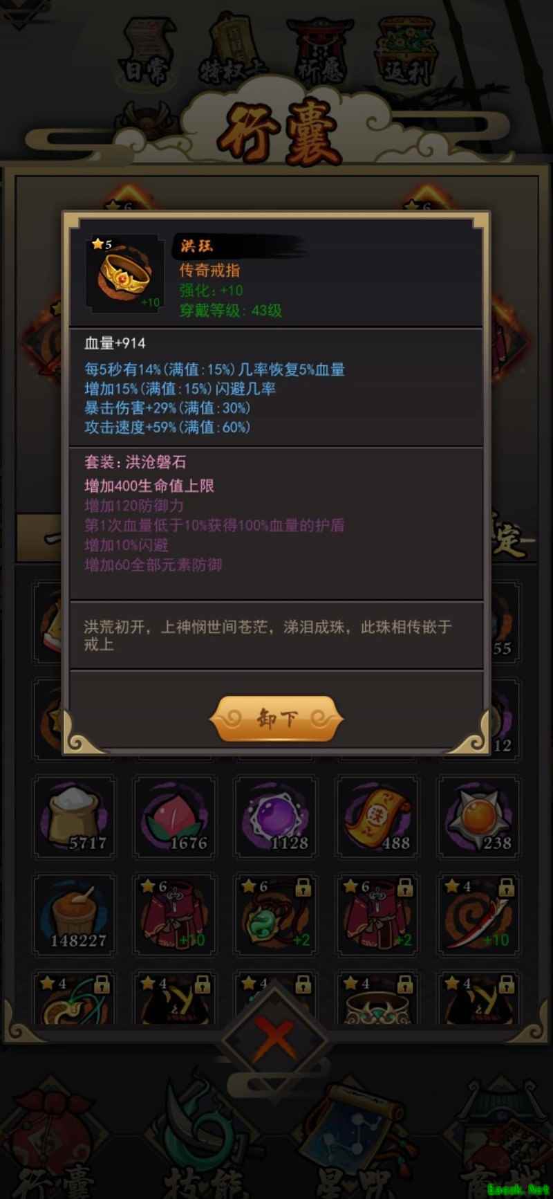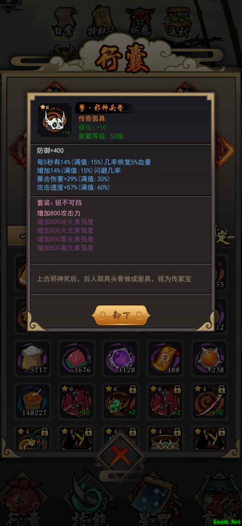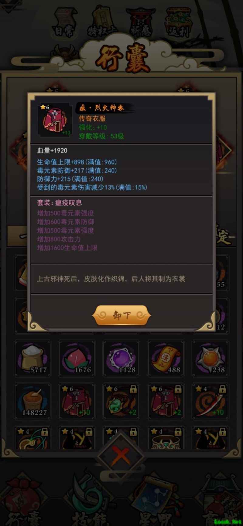 剩下两件,一把六星橙色武器和一条五星橙色腰带,均为日常战斗属性。