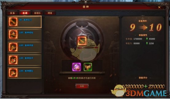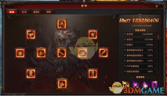 【功能说明】穿戴兽神装备可以获得大量属性加成和兽神装备套装效果