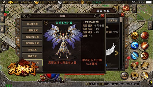 复古传奇这次还更新了许多新内容,满足玩家们的需求。坐骑进行了改版,加上限时和永久页签进行区分,增加升星功能,提升坐骑属性,还新增了年兽坐骑。增加大乘圣者之翼和天劫魔魂之翼,天使与恶魔的反差,各具魅力,提升玩家属性。新增属性反伤和吸血等一系列更新优化,不断完善游戏,让游戏更好玩。