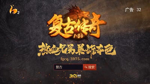 复古传奇也在电视上进行了投放,广西、浙江、广东、江苏等24个省份的各个地方电视台都能见到复古传奇的广告宣传。以白客代言拍摄的复古传奇视频为广告素材,白客饰演王大锤时平民草根的形象深入人心。广告中白客的演绎完美诠释了复古传奇原汁原味还原经典老传奇,装备靠手打,兄弟一起团战等游戏特点,让观众通过幽默诙谐的视频中,了解到复古传奇手游,传奇老玩家更能引起共鸣,一起参与到游戏中。