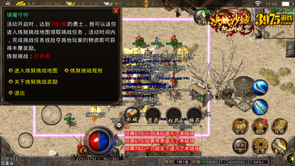 由3975游戏带来的官方授权传奇类游戏《复古传奇之热血传说》(以下简称复古传奇),在还原原汁原味1.80版本老传奇基础上,进行了进一步的玩法创新——炼狱挑战!全新的战斗体验,更激情的团战PK对决,在攻沙战中和服务器中的对手争夺沙城,而在炼狱挑战中可以和来自不同服务器的玩家进行争夺。战场已经开启,勇者的试炼等你来挑战!