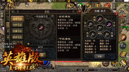还在为自己的血量、防御力等属性不够强大而担心吗?《复古传奇英雄版》为玩家增加生命力,提高生存能力提供途径。这次版本推出修炼系统和玉石系统,新的系统让玩家的属性大大的提升。