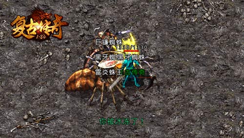 雷炎洞穴里有全新的怪物,全新的BOSS,黑牙蜘蛛、巨镰蜘蛛、金杖蜘蛛,长着蜘蛛外形的怪物,实力不容小觑。雷炎蛛王是蜘蛛里的BOSS,分布在雷炎洞穴第二层,数量有限,想要打BOSS的玩家们要抢占先机。击败怪物有几率掉落祖玛级新装备,BOSS雷炎蛛王有几率产出赤月或魔龙级新装备。去雷炎地图挑战时,被一群蜘蛛围攻可是常有的事,千万要小心。