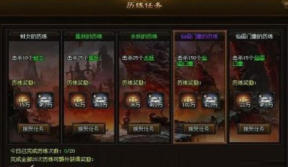 在游戏中点击主界面上方的历练任务按钮打开界面,选择一个任务点击接受任务,推荐选择品质最高、收益最好的任务。
