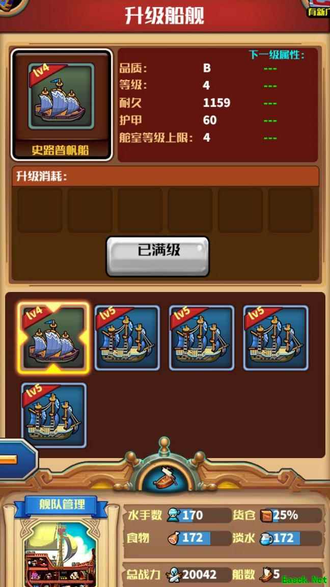 历经艰辛才凑齐这套配置:一艘初始赠送的船,外加四艘花费300木材购买的货船。