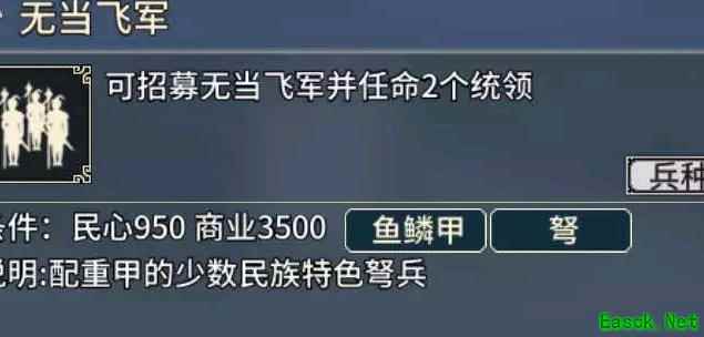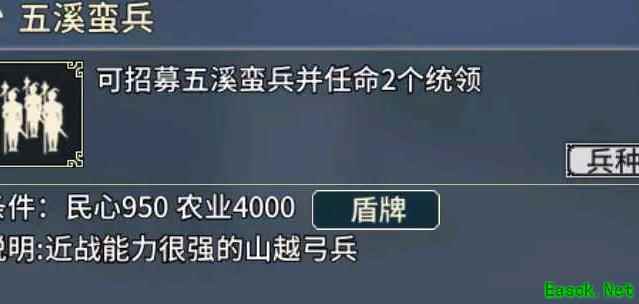 荆州周边中小势力可优先收服,南方士家与东方孙家亦易掌控。通常作为辅助兵种使用,非攻防核心力量。