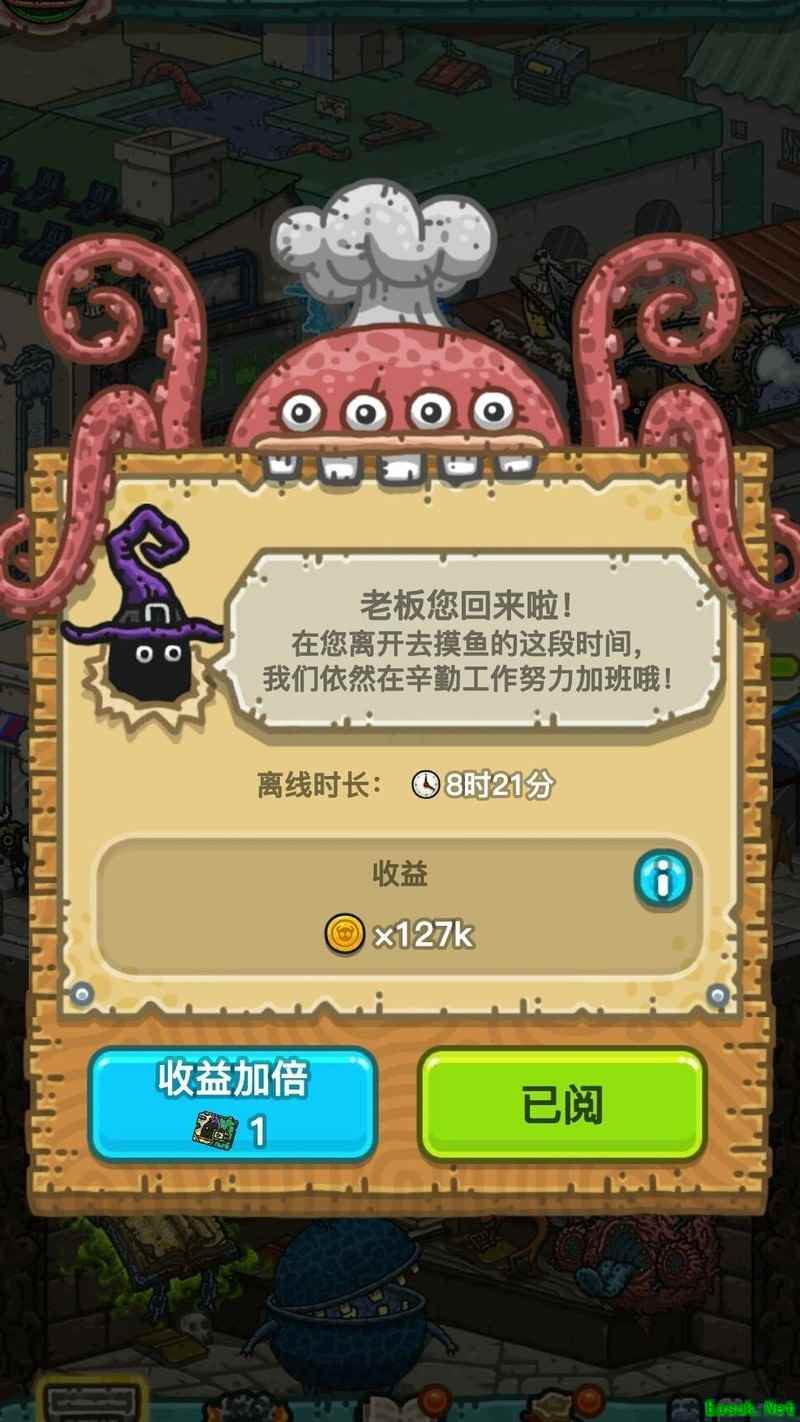 上线后出现离线收益提示时,不要点击「已阅」,应选择「收益翻倍」,并使用一张麻瓜卡即可完成操作。
