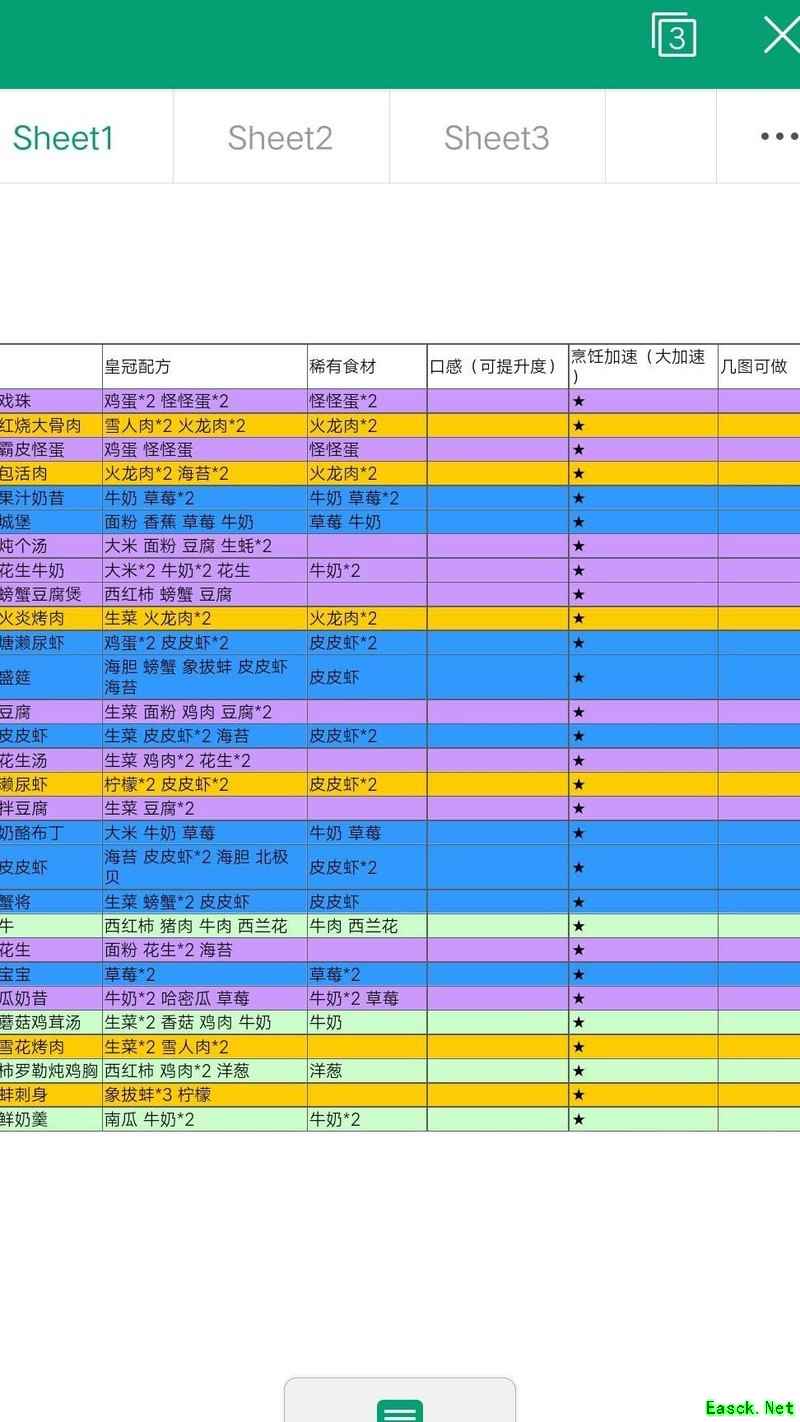图注2:绿色代表推荐给新手的12种高收益作物,初期数量不足时需搭配其他作物填补。蓝色为3级图,黄色为4级图,紫色为5级图,分类清晰直观。
