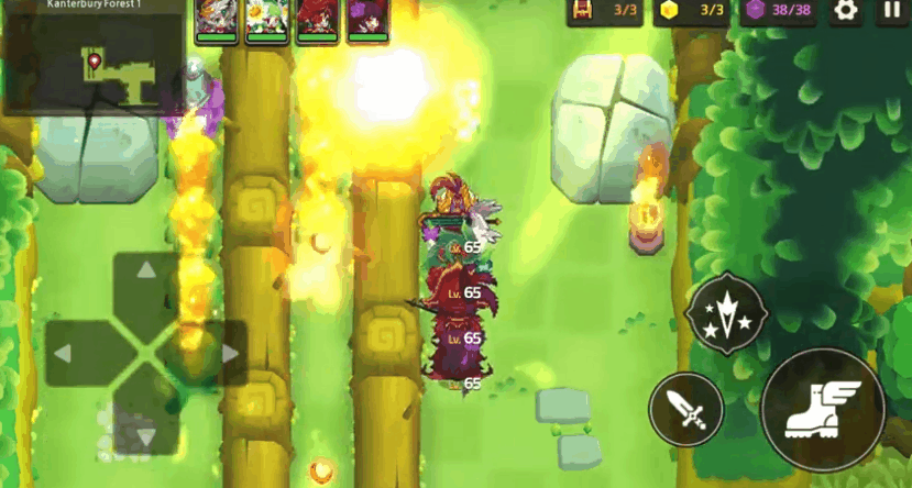 而《坎公骑冠剑》显然在两个方面取得了很好的平衡。在过场动画上,《坎公》采用了更能凸显动态的方式,人物的动作与场景有了更多的互动,在更偏向平面的像素之中表现出了人物很强的立体感,也将场景的纵深感带给了玩家。