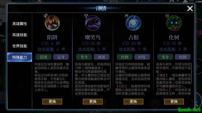 后期大家都用技能隐匿,我慌忙躲进草丛。变树在我看来最没用,在岩砖上变成树太显眼了,谁看不出异常?还有一次头顶钱袋的鹰飞过,引来嘲笑鸟,我吓得立刻冲出草丛逃跑,根本藏不住。