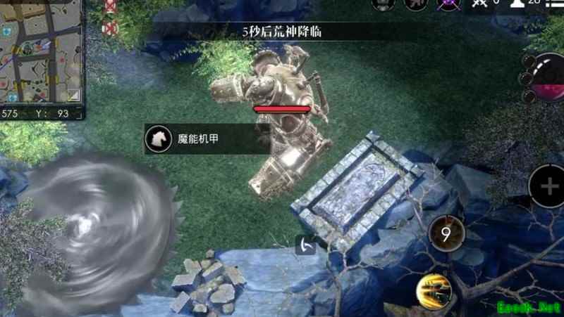 当荒神距离较远时,可借助地图上的坐骑快速移动。目前共有三种坐骑可供选择,其中魔能机甲具备技能释放能力,但防御较弱,通常受一次攻击便会故障损毁。