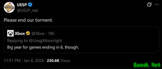 权威的《上古卷轴》维基百科官推也转发了这一消息,但给出了非常理性的回应:别再折磨我们了。