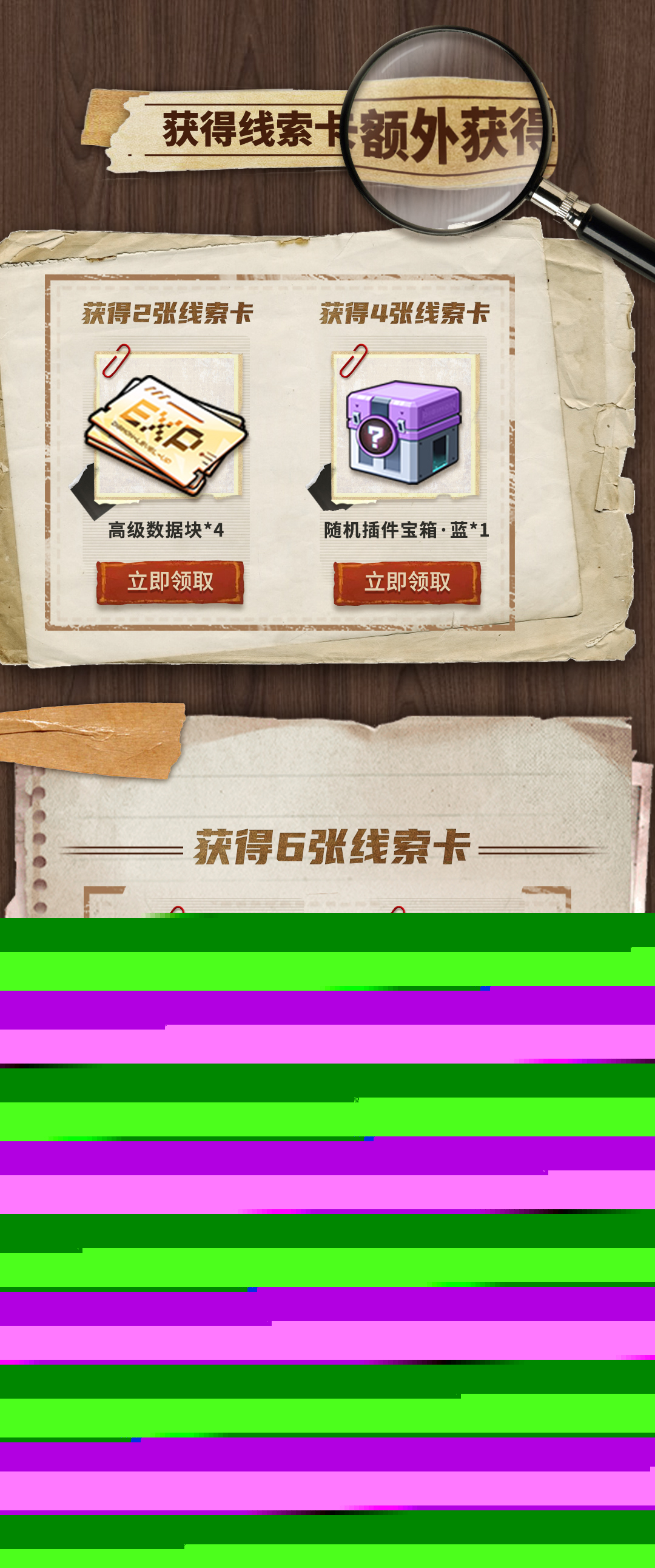 已拥有的【线索卡】达到指定数量时,还可领取高级数据块、随机插件宝箱·蓝、超级数据块、成长期核心代码、金币和晶钻等丰厚道具奖励。更有公测版本限时福利惊喜放送,红包豪礼与周边福利等你来拿哟!