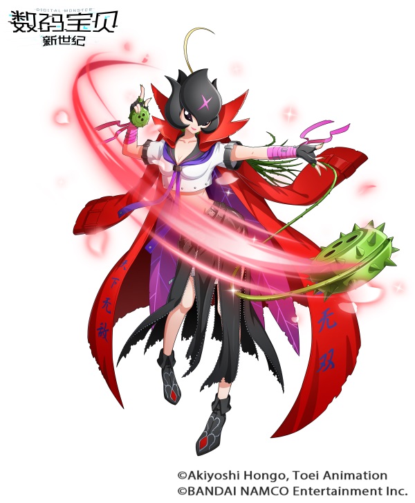 身着深红特攻服的妖精型数码宝贝。花仙兽时期华丽的花瓣染成了暗色,以往那种可爱的印象荡然无存。在弱肉强食的数码世界里,心怀为弱者而战的信念,拯救了众多被凶恶数码宝贝袭击的人们。取得“番长”称号而身穿的特攻服正是贯彻其信念的证明。