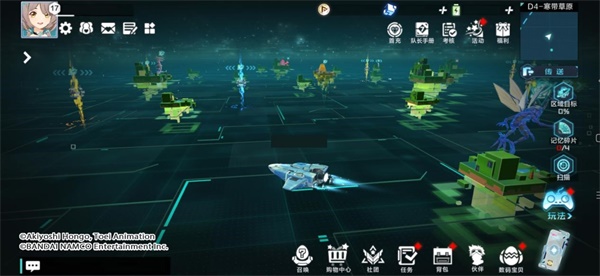 在主机形成的虚拟空间中,DTF已探明的区域叫做网域,网域内有各种数据构成的小岛和资源,存在着各种入侵数码宝贝,需要驾驶空艇在其中巡逻,收集数据并击退入侵的数码宝贝。