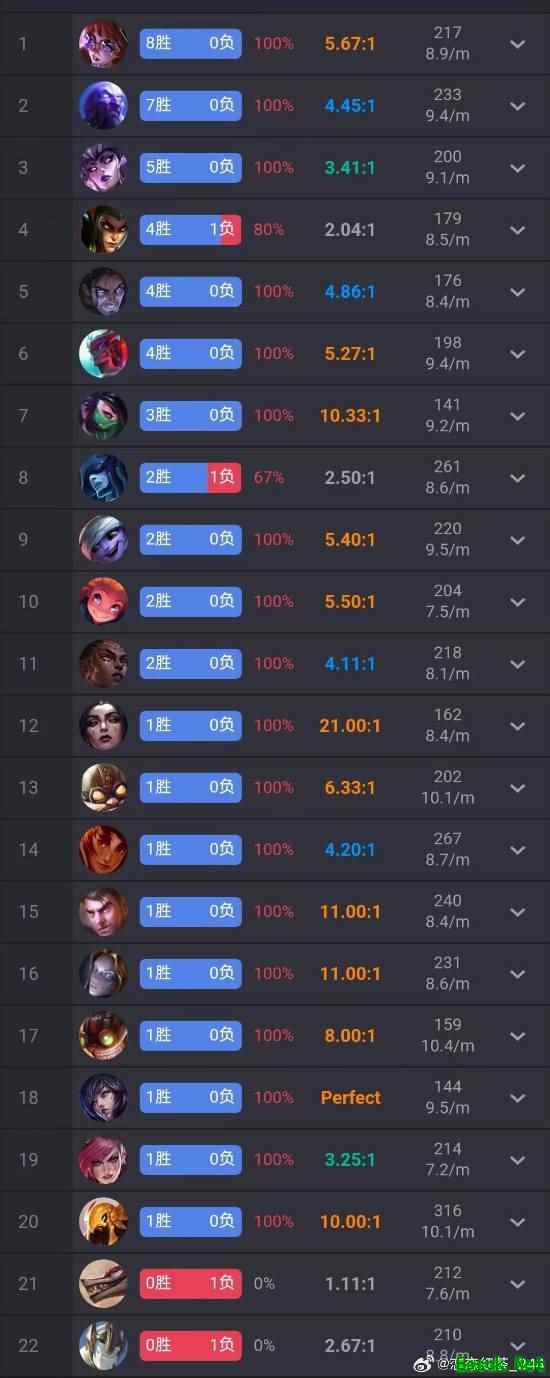 据悉,这个账号的英雄池可谓“深不见底”,共选用了22位英雄,而胜率更是高达恐怖的93%!作为参考,韩服高分TOP100榜单中仅有3人的胜率超过70%,其中最高也不过75%。