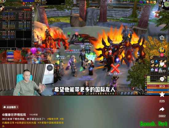 据抖音@魔兽世界情报局报道,国内知名演员、“职业法师刘海柱”许君聪直播打魔兽世界泰坦重铸时光服。