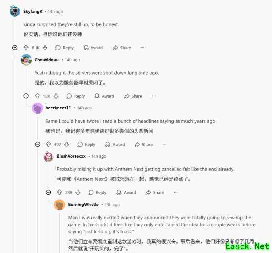 《圣歌》是 EA 与 BioWare 于 2019 年推出的科幻服务型动作游戏,以 “机甲飞行移动” 为核心特色,但因内容匮乏、玩法单一等问题上线后口碑下滑。2021 年官方宣布取消《圣歌 2.0》的开发计划,此次服务器永久关闭,标志着该作品正式终止运营。
