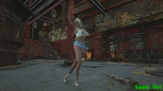 MOD制作者本人将大蚰蜒套装替换成现代的露脐装和超短热裤,反差感十足。
