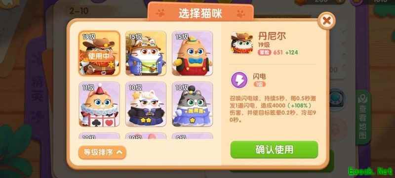 我用19级丹尼尔,技能为闪电,搭配猫咪出战。
