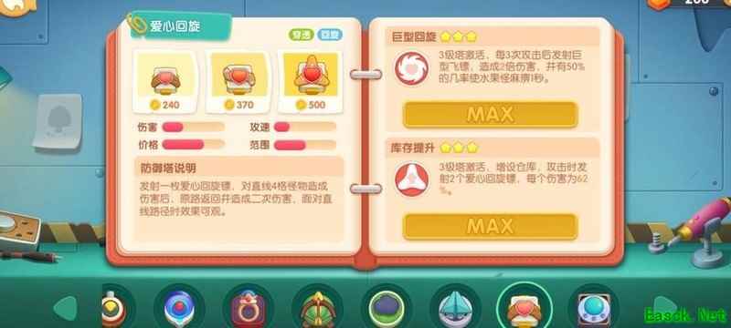 视频中这局我未使用最后一个回旋镖塔防,原因很简单,成本较高,为节省资源便没有购买。