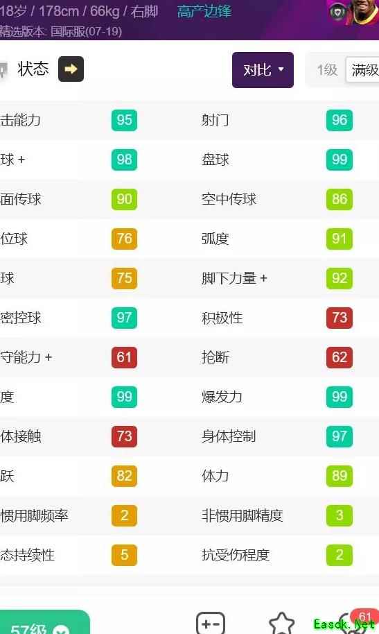 科乐美再次推出法蒂,堪称实况足球的亲儿子。他的能力值简直夸张至极:双速99、盘带99、射门96,光这三项就足以震撼全场。更离谱的是,他还拥有90的地面传球,作为内切型边锋几乎无懈可击。一旦开启B状态,瞬间化身巅峰内马尔的翻版。攻防两端全面覆盖,跑位灵活,突破犀利,传球精准,这样的数值配置已经超越了合理范畴,堪称游戏内的梦幻存在,完全打破了平衡性,令人咋舌。