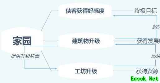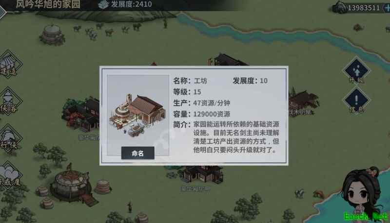 家园中的侠客居住在各类建筑里,因此建造和升级建筑至关重要。建筑升级不仅能加快侠客好感度的积累,还能提升整体发展度。而发展度是工坊升级的前提条件,工坊升级后可提高资源产出效率,反过来又支持更多建筑的建设与升级。资源、建筑、工坊与发展度环环相扣,形成一个相互依赖的系统。虽然看似复杂,但只要理清其中逻辑关系,整个流程便会清晰明了,一目了然。