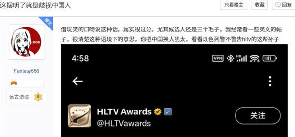 从用中国群体命名奖项却无视中国玩家感受,到邀请争议人物站台刺痛玩家情绪,HLTV 此次颁奖礼的操作堪称 “灾难级”。如今国内玩家的愤怒,本质上是对不尊重行为的反抗。电竞圈需要的是公平、尊重与包容,而不是用争议性噱头博眼球的低级操作。