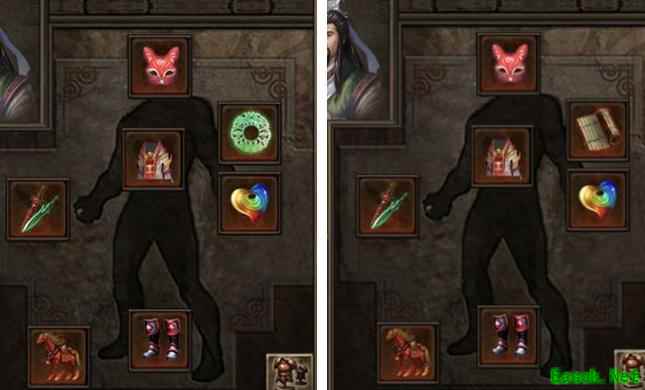 刘备(曹操):雌雄双兔、赤兔马(非月光马)、五彩风衣、吴子剑(春秋或和氏璧)、三速鞋。