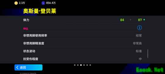 92分的射门数值以及无逆足的属性