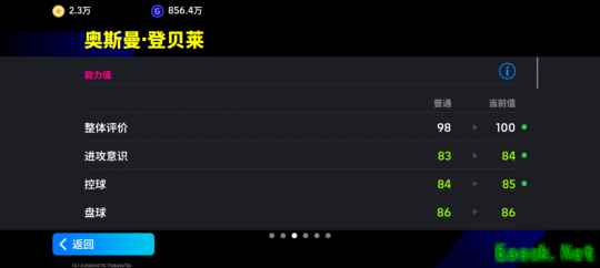 登贝莱增能属性为【敏捷 +3】
