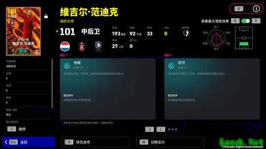 范迪克增能属性为【抢断 +3】,防守和对抗能力的全面增强,让他成为后防线上让人放心的定海神针!