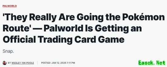 在游戏取得现象级成功后,《幻兽帕鲁》的开发商Pocketpair正加速拓展其商业版图。今日,公司宣布将与日本卡牌游戏巨头武士道(Bushiroad)合作,于2026年7月30日正式推出《幻兽帕鲁官方集换式卡牌游戏》。