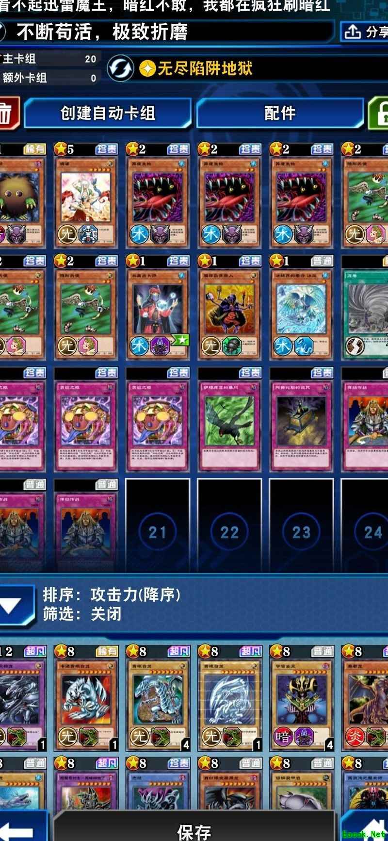 尽管是增厚卡组,总张数也不宜超过20张,以提高抽到关键卡的几率。三张贪欲之瓶可增加12张卡,配合技能将墓地陷阱返回卡组,还能进一步大幅增厚牌库,远超对手。