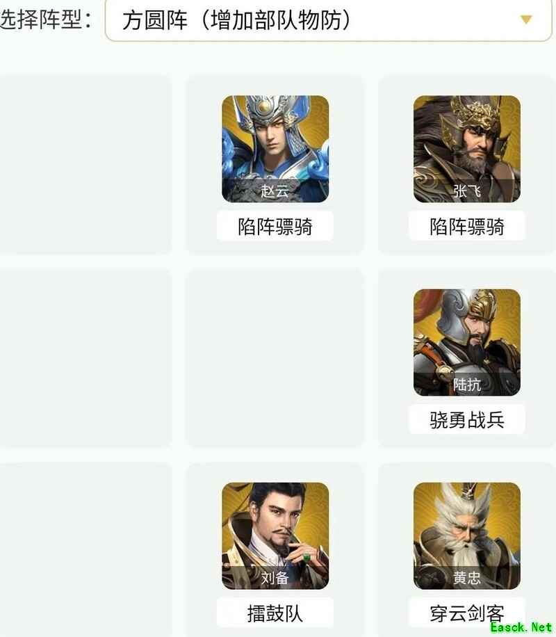 张飞与赵云任陷阵骠骑,陆抗为骁勇战兵,黄忠担当穿云剑客,刘备负责擂鼓助威。