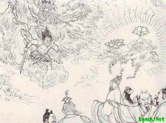 九位先天神灵为争夺九个蒲团结下恩怨,埋下日后巫妖与神魔大战的伏笔;其余四十尊只得无奈落座于泥砖之上,心有不甘。
