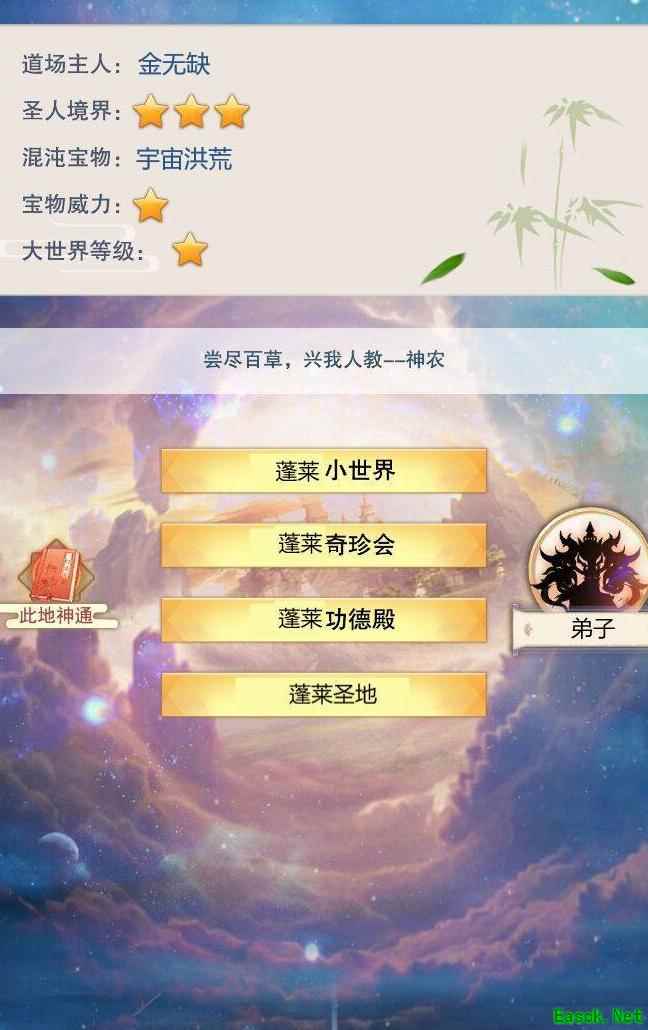 开天辟地:感悟天地初开,提升自身属性。