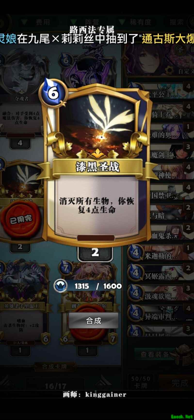 目前真正全橙红的路西法并不多,毕竟不是每个人都会花大代价去培养。因此,在多数对局中,我们的卡组面对路西法时具备明显优势。